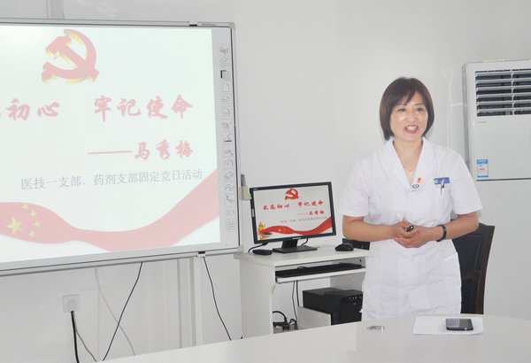 7月5日下午,党委委员、人事科科长马秀梅同志在规培基地306教室作了题为《不忘初心,牢记使命----做新时代合格党员》的专题党课讲座。药剂联合支部、医技一支部党员同志参会学习。