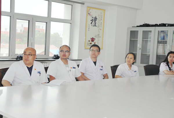 医技一支部书记赵雪松等(左一)在认真聆听党课