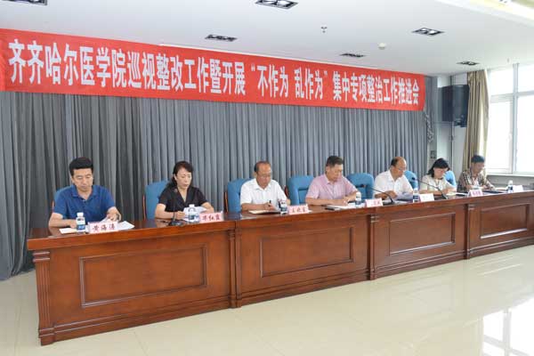 会上,学院党委副书记崔光成结合《中共齐齐哈尔医学院委员会关于省委第十巡视组反馈意见的整改方案》,布置了整改工作;纪检监察处处长黄海涛宣读了《中共齐齐哈尔医学院委员会关于开展“不作为、乱作为”集中专项整治工作实施方案》。