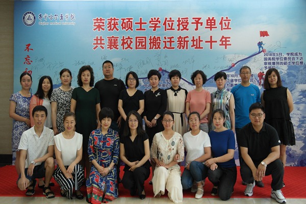 在讲解员的引导下,教师们认真聆听了我校五次搬迁,九易其名的发展历史,深刻认识到72年办学凝练的齐医文化精髓,无不彰显着齐医人“自强不息、甘于奉献”的奋斗精神。参观中,当老师们在刘吉成书记撰写的“大医园赋”前驻足,在记录着办学历史的老照片前驻足,在历任为齐医奉献青春的领导肖像前驻足,在校风、校训、校歌前驻足时,教师们不禁感慨万千:见证了72年来我校砥砺前行的奋斗历程,感受了一代代齐医人薪火相传的坚定意志,时下,尽管时光荏苒,但情怀不变,齐医的种种文化印记经耳濡目染,已潜移默化在每个齐医人的心里。教师们纷纷在校史馆内合影留念,感动于学校翻天覆地的变化!随后全体教师又来到学校搬迁新址十年暨学院喜获硕士学位授予单位宣传板前参观并纷纷合影留念,为学校的美好发展而欢欣鼓舞。