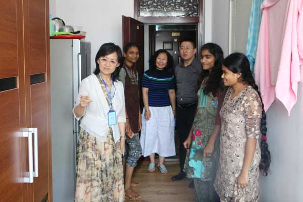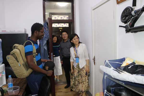 张晓杰副院长先后到留学生公寓梅园4栋和杏林园5栋,实地检查了公寓消防安全、厨房卫生、值班人员安排等,并与留学生深入交谈,详细询问了留学生假期出行、留校安排和假期活动情况,要求在校留学生要严格遵守学院和公寓管理规定,做好寝室防火防盗、厨房用水用电安全、确保出行安全和人身安全等,度过一个平安愉快的假期。同时,她对暑假期间在校留学生的活动开展和公寓管理进行了整体部署和安排,并指出,要加强各项工作的制度建设,细化安全检查环节,丰富留学生课外文化活动。
