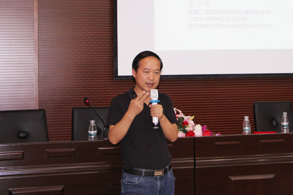 揭牌仪式后,王小平教授以《重性精神障碍者的暴力危险性评估》为题,从重性精神障碍者危险性概述和暴力危险性评估两方面进行了深入阐述,为临床上危险性评估提供了可靠方法。学院附属医院相关医生、精神卫生学院师生等听取讲座,并与王小平教授就相关问题进行了深入交流讨论。王小平教授还对学院精神医学专业师资培训内容、方式方法等提出了宝贵的意见和建议。