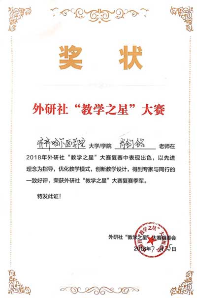 外研社“教学之星”大赛是外语类教学竞赛的高规格比赛,本次大赛的主题为“基于任务的设计:目标、过程与评价”。外语教研部非常重视此次比赛,为参赛选手选配了优秀教学指导团队,从课程设计、教学内容、教学语言、教学环境等各环节对选手进行了全程细致指导。最终,肖钧铭老师凭借稳重扎实的教学基本功、精准流畅的教学语言以及简洁适度的教学方法,从来自全国各高校的328名选手中脱颖而出,获得复赛季军,展现了学院的外语教学水平,为学院争得了荣誉。