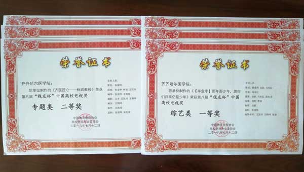 第八届“视友杯”中国高校电视奖于2018年5月正式启动,设新闻、专题、纪录片、教学、综艺、形象、微电影、主持人、论文等九个类别,共收到来自北京大学、清华大学、北京师范大学、中国传媒大学、南开大学等全国100所高校电视台报送的888部作品。经过激烈角逐,学院《那年那少年,愿你们归来仍是少年》荣获综艺类一等奖、《刚好遇见你》荣获综艺类二等奖;《齐医匠心——林岩教授》荣获专题类二等奖;《栉风沐雨四十载 弦歌不绝育英才》荣获形象类三等奖;《母爱撒五月,千里寄恩情——母亲节特别节目》荣获专题类三等奖;《学院举行中国睡眠医学高峰论坛暨精神医学专业创办40周年纪念大会》荣获新闻类三等奖。