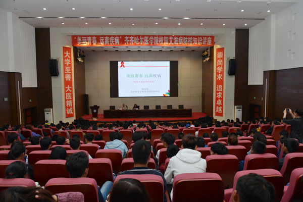 9月13日,学院在图书行政楼二楼多功能厅举办了“美丽青春 远离疾病”校园艾滋病防控知识讲座,讲座邀请齐齐哈尔市疾控中心皮肤性病防治所曲铭锐所长为主讲人。为了做到2018级新生全覆盖,曲铭锐所长开展了7场讲座,为2463名大一学生讲解了目前艾滋病疫情及防控知识。
