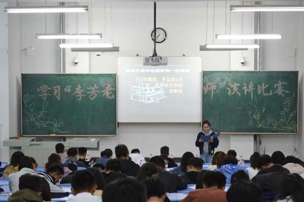 为了深入学习贯彻习近平新时代中国特色社会主义思想,弘扬高尚师德,9月17日晚,团委在教学主楼北区115教室主办了“感恩李芳老师,弘扬正能量”主题演讲比赛。比赛由校学生会承办。