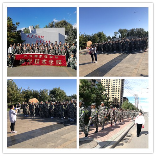 此次徒步活动目的地齐齐哈尔市和平广场,全程6.1公里,14:10分整齐有序的队伍抵达和平广场,在学生党员刘冰心、王健昕的解说引领下,学生依次参观了和平广场的广场景观设计,抗战纪念墙、胜利纪念碑、江桥抗战纪念雕塑、和平之水、每一个具有历史意义的标志性建筑物都在诉说着中国抗战的艰辛历程和光辉岁月。在江桥抗战纪念雕塑下,第六党支部书记李冬冬进行了爱国主义教育宣讲,全体学生进行了庄严的医学生宣誓。