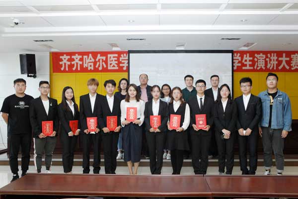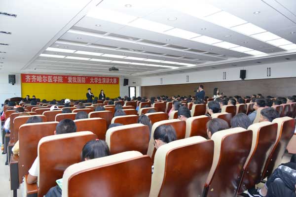 赛场上,有的选手讲述了参加学生军训的实践体会,有的讲述了近代以来仁人志士为中华崛起而奋力求索的感人事迹,有的抒发了对中国特色社会主义进入新时代、实现中国梦强军梦的理解感悟……各位选手的演讲主题鲜明深刻、结构通顺完整、语言抑扬顿挫。他们发自内心的爱国热情和激情澎湃的演讲深深感染了现场评委及观众,博得了阵阵掌声。经过评委现场打分,基础医学院武云景同学摘得桂冠,荣获本次大赛一等奖,并将作为齐市选手之一参加省级比赛。