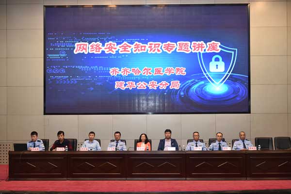 学院宣传统战部部长张宝林、现代教育技术中心主任张淑玮、副主任宋宏泉,建华公安分局网安大队大队长宁大为、北大街派出所副所长于嘉参加讲座并进行工作交流,各二级学院党委、总支副书记、学生辅导员和不同年级、专业的在校学生代表350余人听取了讲座。