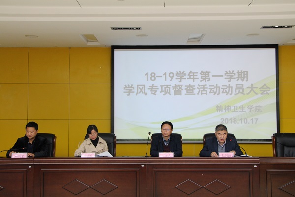 赵阿勐副书记宣读了关于印发《精神卫生学院2018-2019学年第一学期学风专项督查活动方案》的通知。方案对督查时间、督查范围、督查方式、督查内容、督查结果处理等内容提出了明确要求。