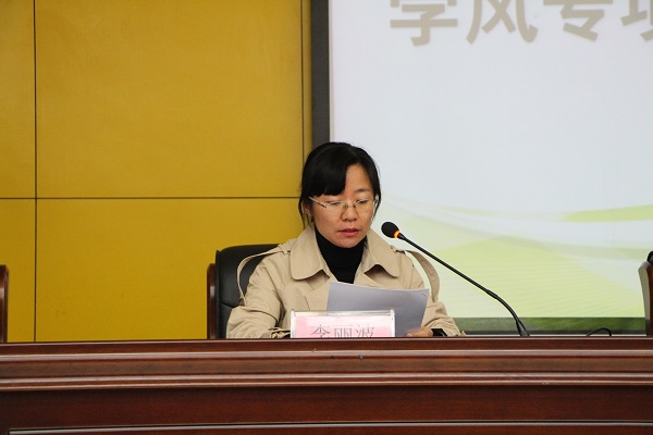 李丽波副院长在会议上强调,要以良好的教风促进学风建设。教师是学生学习的引导者、促进者、合作者,教师的教学态度直接影响学生的学习态度;教师不仅是知识的传播者,更应该是模范——学习的模范、做人的模范。因此,以教风促进学风、以教风带动学风,才能达到以上率下、上行下效的效果,要求学生做到的,教师要先做到。也只有这样,学风建设才能落到实处,抓出实效。