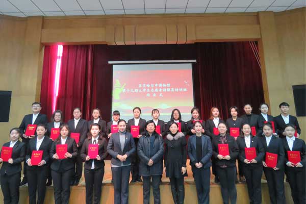本期活动从10月13日开始,共有34人报名参加培训,每周培训2次,4个学时。市博物馆宣教部副主任金润锦和梁萌萌为主讲教师,培训内容涵盖接待礼仪、博物馆学理论与实践、讲解员应具备的基本素质、普通话等。经过16学时的学习,学院有9名学生进入最终考核。考核现场,金润锦副主任等7名评委对各位讲解员从语言、形体、台风以及对之前所学历史知识的掌握情况进行了综合评分,学院李洋洋、邵玉蒙两位同学凭借出色的表现获得现场评委的一致好评,荣获优秀学员称号,并被推选参加市博物馆义务讲解活动。