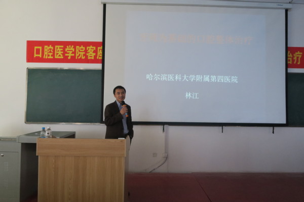 仪式上,李晓华书记对林江教授学术背景及从医经历做了简要介绍。聘请林江教授成为口腔医学院客座教授,加深了学院与哈尔滨医科大学的交流合作,对口腔医学院的专业建设和学科建设水平起到了积极的作用。聘任仪式后,林江教授作了《牙周病新分类与系统治疗》学术讲座,林江教授结合现实与牙周相关专业知识,以幽默、诙谐的语言与同学们共同探讨未来,提出要平衡能力即付出与收获,每个人职业成长所具备的能力,以及这种能力源自于在座的各位今天的努力,并鼓励积极寻找机遇与挑战。讲座中,林江教授强调牙周的连续、完整性对于口腔健康起着重要作用,他认为牙周病不是独立的一种疾病,而与全身健康状况有着直接关系。随后,林江教授就牙周新分类的变化做了简要介绍并对同学们的问题做出解答。