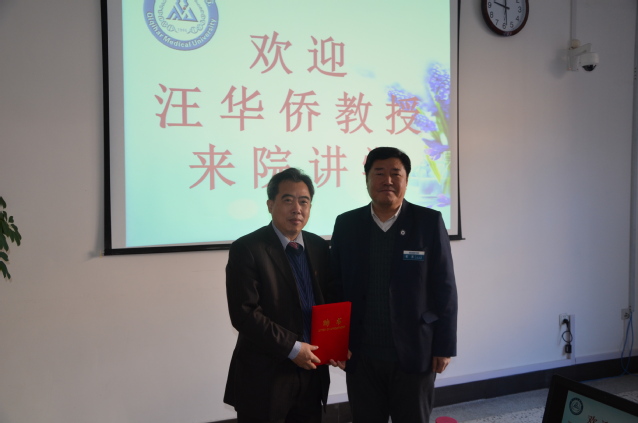 为加强学术交流,推动基础医学硕士点建设工作。12月5日,学院聘请中山大学中山医学院汪华侨教授来院讲学。基础医学院李涛院长为汪华侨教授颁发齐齐哈尔医学院客座教授聘书,讲座由基础医学院沈雷副院长主持。