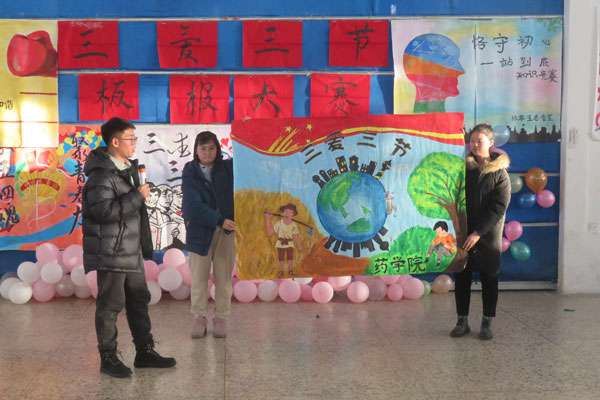 各二级学院学生组织及校学生组织参加了此次活动。板报设计的同时,还进行了精彩的文艺演出。随着表演的结束,一张张载满汗水与激情的板报呈现在评委与观众面前。各代表队均选派代表讲解了板报的设计主题与创作思路,加深了大家对板报以及三爱三节的理解。经过评比,校学生社团联合会代表队荣获一等奖,公共卫生学院、药学院代表队荣获二等奖,校志愿者总会、校园之声广播电台、基础医学院代表队获得三等奖,精神卫生学院、护理学院、校学生总会代表队获得优秀奖,病理学院代表队获得最佳视觉奖,口腔医学院代表队获得最佳创意奖。
