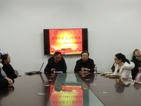 2018年12月12日下午,在学术科技楼201会议室,药学院党委书记、副院长弓箭面向全院“青马工程”骨干、学生干部传达了全国教育大会精神。