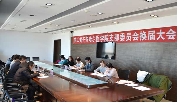 会上,听取了农工党齐齐哈尔医学院支部委员会工作报告,宣读了市委会的批复,介绍了候选人情况,审议通过了选举办法和监票人名单。按照严格规范的选举程序,选举产生了由4人组成的新一届农工党齐齐哈尔医学院支部委员会。祁艳波当选为主任委员,许伟岚当选为副主任委员,李公启、崔涛当选为委员。许伟岚代表新一届支部委员会发言,表示将坚持中国共产党的领导,增强“四个意识”,提高“五种能力”,绝不辜负各位领导和全体党员的重托。