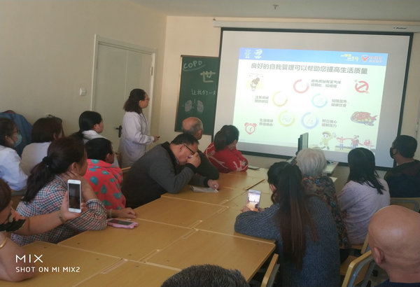 于主任系统地介绍了慢阻肺的病因、症状、并发症、治疗及预防等。现场讲解了避免接触有害气体(如吸烟)、预防感冒、加强营养、生活规律、缓解压力对慢阻肺患者提高生活质量的重要意义,讲座现场大家一边认真听讲,一边详细做着笔记,讲座结束后,大家对生活中遇到的健康问题与于主任进行了交流,于主任详细一一解答,获得了患者一致好评,纷纷表示受益匪浅。