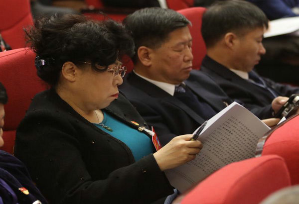 市人大代表、院长、党委副书记张淑英同志认真聆听报告