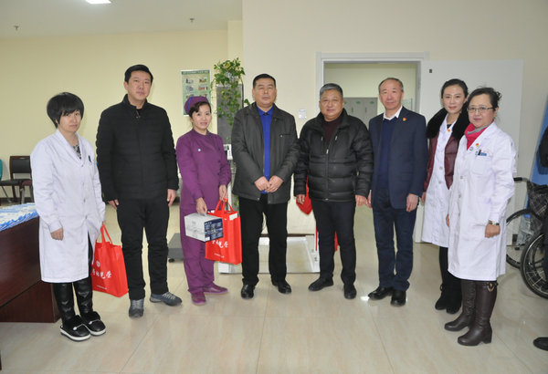 1月24日上午,新春佳节即将到来之际,市总工会副主席徐德信同志带领相关工作人员一行3人带来饺子、汤圆、牛奶等慰问品,来院慰问坚守在一线工作岗位的职工。党委书记丁国旭、纪检委书记胡晓强、副院长赵玉环等医院领导陪同慰问。