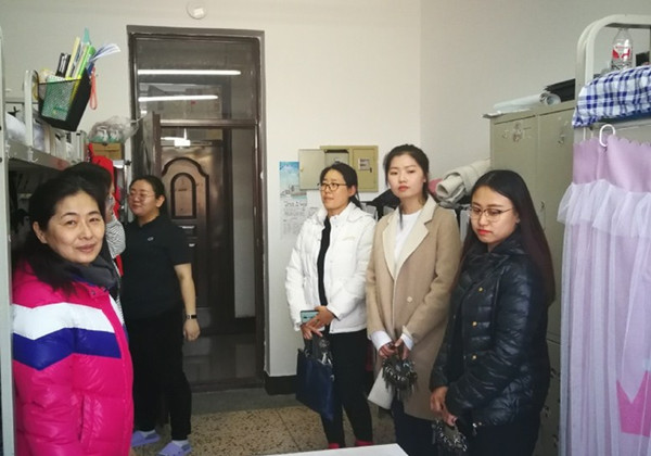 一行人先后深入到杏林、丁香楼逐一检查内务卫生、安全稳定情况,了解学生报到返校情况和假期思想动态。期间,重点对参加补考的学生备考和考试情况进行了详细了解,并耐心叮嘱学生认真备考,诚信考试。强调严禁使用违禁电器,严禁吸烟,保持寝室卫生、构建文明和谐的寝室文化的重要性。嘱咐学生们尽快调整好身心状态,投入到紧张的学习之中。