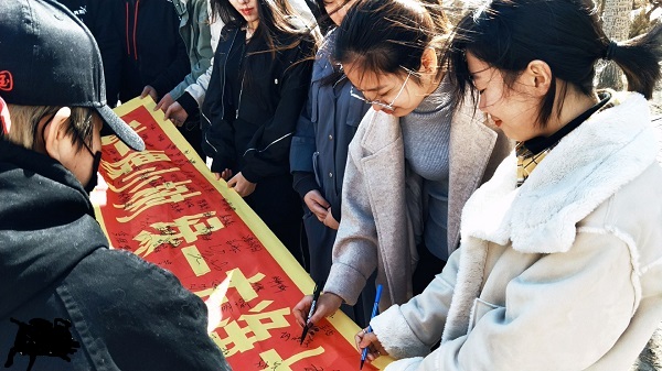 活动过程中,志愿者向同学们进行了植树节知识的的讲解,并邀请同学在条幅上签下自己的名字,为校园生态文明建设助力。