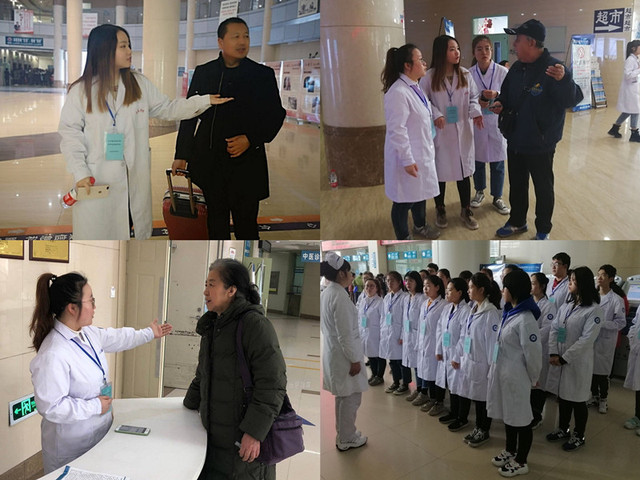 活动开始前,同学们在附属第三医院护士长的带领下熟悉医院整体情况,并认真的记录医院各科室的布局及其工作职能,来保证为就诊的患者提供最优质的导诊服务。导诊过程中,同学们热情高涨,帮助患者指引方向、为年纪较大的患者取化验单、帮助护士分诊等等,为患者及时就诊提供了便捷条件。导诊工作在同学们的充分准备下井然有序的进行,为患者从生理、心理上给予了力所能及的帮助。