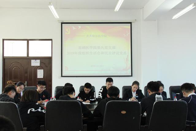 为加强新时代党支部规范化建设,充分发挥高校基层党组织的战斗堡垒作用。按照《中共齐齐哈尔医学院委员会关于做好 2018 年度基层党组织组织生活会和开展民主评议党员工作的通知》精神,经请示基础医学院党委同意,基础医学院第九党支部于3月15日召开2018年度组织生活会暨民主评议党员大会。此次会议得到了上级党组织的高度重视,省市委组织部及校组织部领导同志全程莅临观摩。