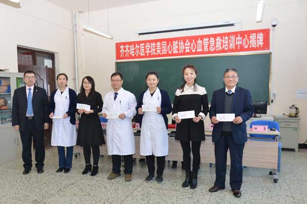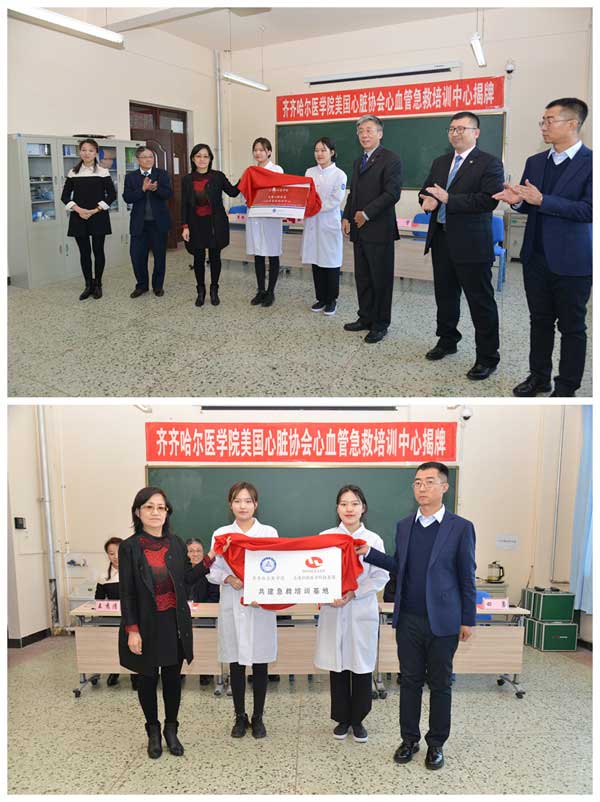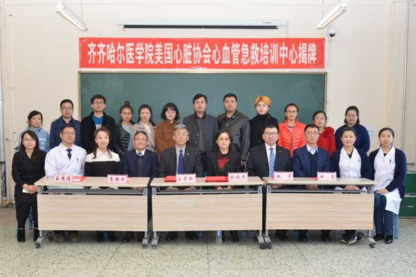 3月18日下午,齐齐哈尔医学院“美国心脏协会(AHA, American Heart Association)心血管急救培训中心”在临床技能实验教学中心正式揭牌成立。学院副院长张晓杰、美国心脏协会国际培训中心总监王革新代表双方签署合作协议书,并共同为心血管急救培训中心揭牌。仪式上,张晓杰副院长还与上海弘联科技有限公司区域经理田勇共同为校企共建急救培训基地揭牌,美国心脏协会国际培训中心主任导师赵宇为学院首批基础生命支持导师颁发了证书。