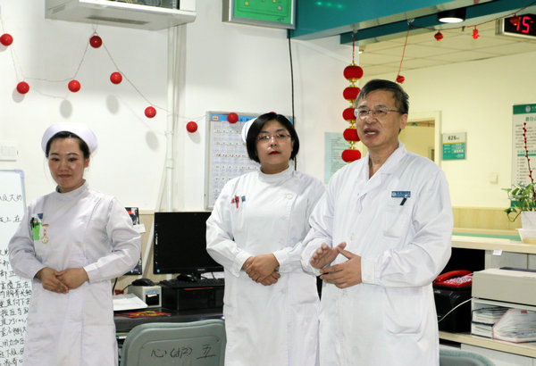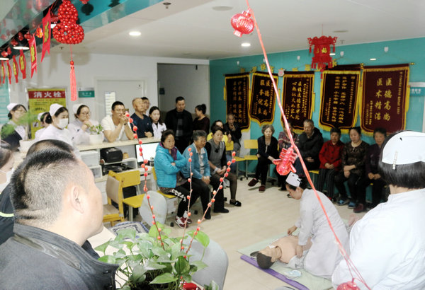 3月22日下午,心内科五病区在病房为住院病人及家属组织开展了心脏骤停科普知识讲解及心肺复苏术演练培训活动,科主任梁波介绍了心肺复苏术的重要性和必要性,主治医师隋慧颖作心肺复苏知识讲解,护士长孙兰春带领护士为在病人及家属进行了规范心肺复苏术的演练培训。
