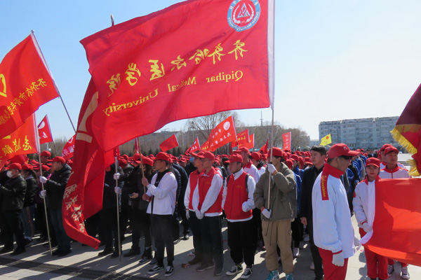 3月27日,齐齐哈尔市学雷锋志愿服务月“万名志愿者当先锋 文明城乡建设我先行”主题活动启动仪式在市政务服务中心举行。学院选派55名大学生志愿者代表参加了此次活动。省人大常委会副主任、齐齐哈尔市委书记孙珅等出席活动,并为志愿服务队授旗。齐齐哈尔市委常委、宣传部长何晶希望全体志愿者以满腔热情参与到志愿服务活动中,为推进鹤城全面振兴全方位振兴努力奋斗。