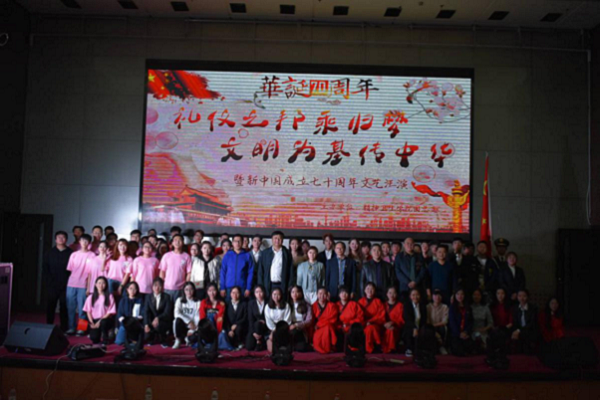 为了激发广大学生的爱国热情,培养学生的爱国情怀,4月15日晚18点,精神卫生学院在图书行政楼二楼多功能厅举行了“礼仪之邦乘归梦,文明为基传中华”暨新中国成立七十周年文艺汇演,共同祝福伟大祖国七十华诞。学院党委学生工作部部长宋耀新、学院团委书记马倩、精神卫生学院党总支书记史孝志、学院党委学生工作部副部长孟令军、精神卫生学院党总支副书记赵阿勐、学院党委学生工作部思政科主任于泳以及精卫院全体师生、各二级学院学生代表观看了本次文艺演出。