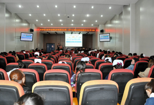 4月20日上午,由市医学会主办、医院承办的齐齐哈尔医学会消化肝病委员会第二届年会暨省级继续医学教育培训班在临床技能中心一楼多功能厅胜利召开,医学会韩志宏主任到会致辞,医院副院长鲍红光教授致贺辞,市消化肝病委员会主委、医院消化内科主任翟雅娟教授主持会议,徐红雨教授、颜炳柱副教授应邀作专题讲座,来自齐市地区的200余位代表参会。