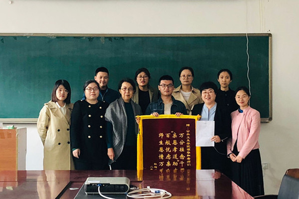 杜超博的感恩行动感动了公共卫生学院的每位老师,在班主任的簇拥下,师生合影留念。公共卫生学院也将一如既往的做好困难学生资助工作,服务学生,立德树人。