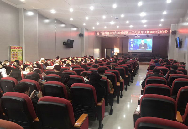 4月25日下午,为纪念五四运动100周年,进一步加强大学生的爱国主义教育,弘扬爱国主义民族精神,增强大学生的责任感和使命感,医院团委组织15级临床专业近百名学生在临床技能中心多功能厅集中观看了大型电视纪录片《铸就时代利剑》。