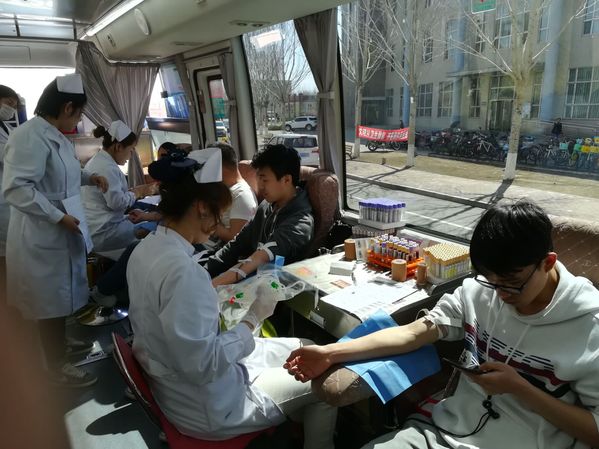 为提高大学生思想道德素质,增强大学生社会责任感,展示当代大学生奉献精神,口腔医学院团总支于4月27日在秋实城门前举办了无偿献血活动。