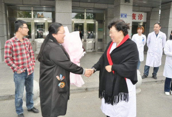 张淑英院长与援疆医生郑纯凤亲切握手
