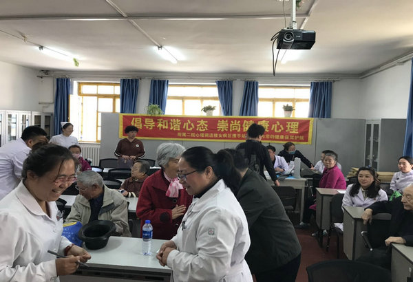 义诊期间,活动现场人头攒动,温暖如春。霍洪亮护士长为社区居民详细的讲解心理、精神的相关病因及护理事项,为前来的居民答疑解惑。赵锐等精神科医生为前来义诊的居民进行疾病咨询,发放了心理健康宣传手册。女病区医护人员对于居民提出的问题耐心解答,医生们为义诊居民根据前来居民或家中的病人提出了诊疗方案,指导治疗用药,传播了健康和谐的生活方式,注重保持健康心理这一理念。精神卫生专家们的爱心奉献与仁心仁术,赢得了站前社区百姓的一致好评和热情欢迎。