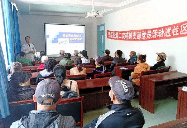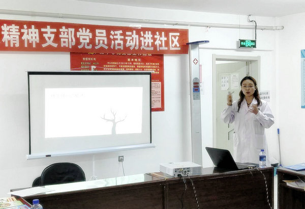 精神卫生中心男二病区医生孙伟东为社区居民进行专题讲座