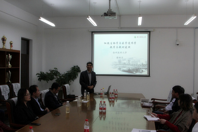蔡绍京教授以《细胞生物学与医学遗传学教学及教材建设》为题,介绍了近40年来致力于教学、教材建设的宝贵经验,强调了教材建设的严谨性与重要性,对我院的教材建设起到推动作用。