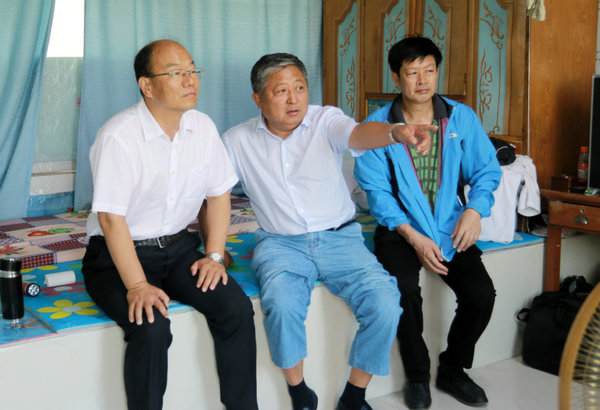学院党委副书记崔光成(左一)、医院党委书记丁国旭到长发村进行调研指导帮扶工作
