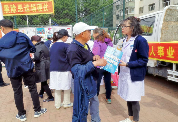 5月17日上午,在第29个全国助残日到来之际,提高对社会残障人士的关爱程度,精神卫生中心医务主任梁雪梅,护理部主任赵艳华带领开放病区医护人员共五人深入我市铁锋区北局宅纺织社区,参加了社区举办的“扶残助残,有你有我”为主题的义诊活动。
