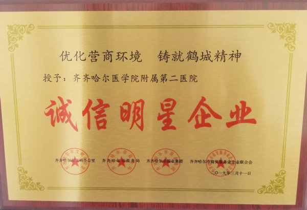 近日,市精神文明建设办公室、齐齐哈尔市商务局、齐齐哈尔报业集团和齐齐哈尔商贸服务企业联合会联合组织开展的“优化营商环境铸就鹤城精神”评选活动结果揭晓,医院被授予“诚信明星企业”称号。