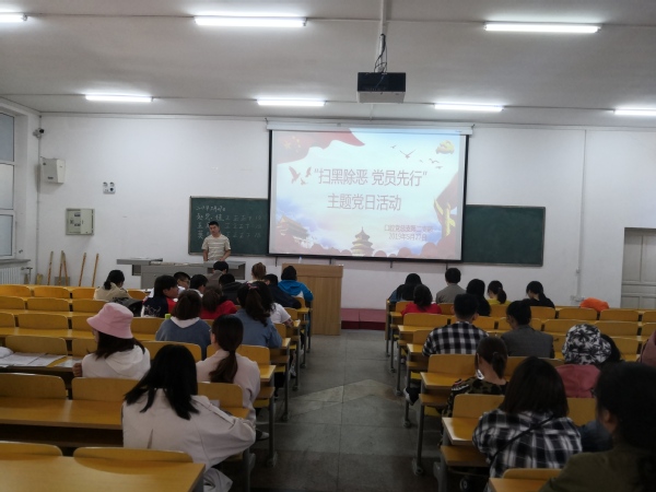 在活动中,支部书记孔德生首先带领全体党员学习习近平总书记关于扫黑除恶专项斗争的重要指示精神,集中学习《黑龙江省扫黑除恶专项斗争明白卡》等相关文件,对扫黑除恶专项斗争的工作目标和重大意义、“黑势力”和“恶势力”的界定、扫黑除恶专项斗争责任落实、什么是黑恶势力“保护伞”等内容进行深入的介绍,让大家对如何打击黑恶势力的“保护伞”、依法严惩黑恶势力犯罪等活动有了全新的认识,进一步强化了党员大局意识和责任意识。在研讨环节,支部党员踊跃发言,王方方同志以“扫黑除恶知识进校园”为主题做了分享发言,她号召全体党员同志积极带动身边的人加入扫黑除恶专项斗争的队伍,坚持在党的领导下坚决打赢扫黑除恶专项斗争这场攻坚仗。