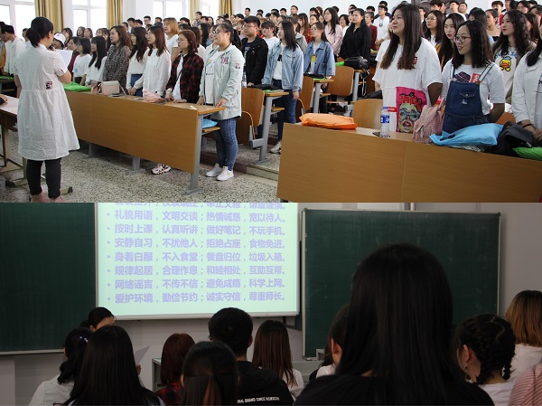 最后杨微微老师带领全体同学重温了医学生誓言,并学习了齐齐哈尔医学院学生校园文明公约。学生表示在实习期间一定努力做到尊敬师长、举止文明,努力学生专业技能,提升自身专业素质和身心素质。