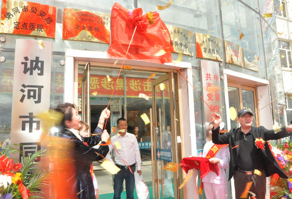 医院副院长孙庆顺与同安医院院长白娟为医联体揭牌,王洪全主任、张淑英院长、庞伟董事长等进行剪彩。