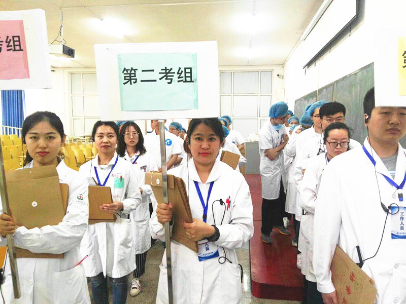 为了确保考试顺利进行,我院教务科临床技能实训中心的老师提前一多月就开始设计考试流程、分组、布置考场考站等,大到每一个模型小到每一个器械,都一一反复核对,考前还组织全体考务人员进行模拟演练,确保万无一失,做好万全准备。考试当天教学副院长宁景志作为总考官在考前给全体考官及考务人员召开考务会,强调考务纪律及考试精神。教务科长钟锐作为考务负责人对具体考务工作进行了解说并提出了相关要求。考试过程中,学生们以自信的精神状态积极考试,考官们以严谨认真的态度严肃监考,考务人员以饱满的热情各履其责,整个考试秩序井然,顺利圆满。