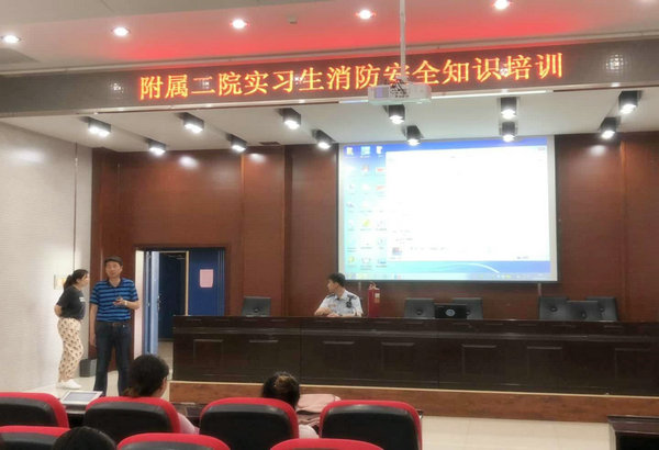 6月11日上午,保卫科邀请建华消防大队参谋、消防安全宣讲员张朔卿,在临床技能中心多功能大厅为学生进行了消防安全培训,2015级全体学生100余人参加培训。