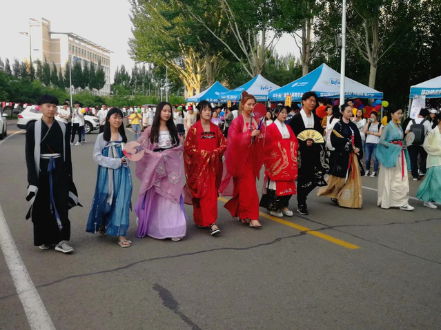 学生汉服走秀,同时解说汉服的历史文化