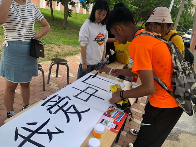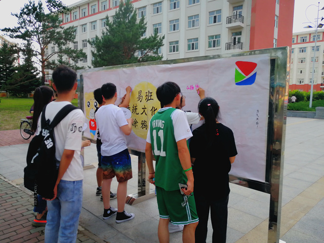 学生在“易班∙中华传统文化开放日”涂鸦墙上签名留言